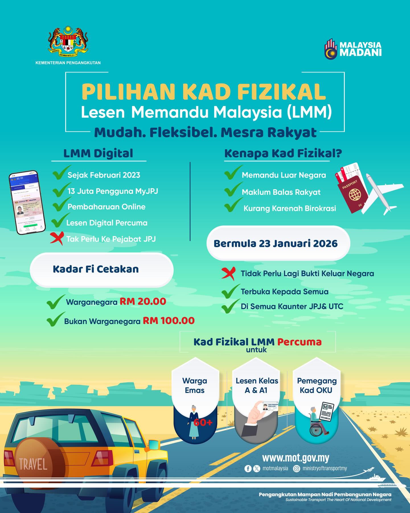 Applications for physical prints of LMM can be made at any JPJ counter or the Urban Transformation Centre (UTC) nationwide, with a printing fee of RM20 for citizens and RM100 for non-citizens.