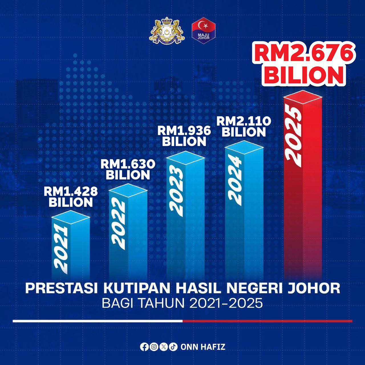 Johor Menteri Besar, Dato’ Onn Hafiz Ghazi has stated that Johor made a revenue collection of RM2.67 billion for 2025, the highest ever recorded.