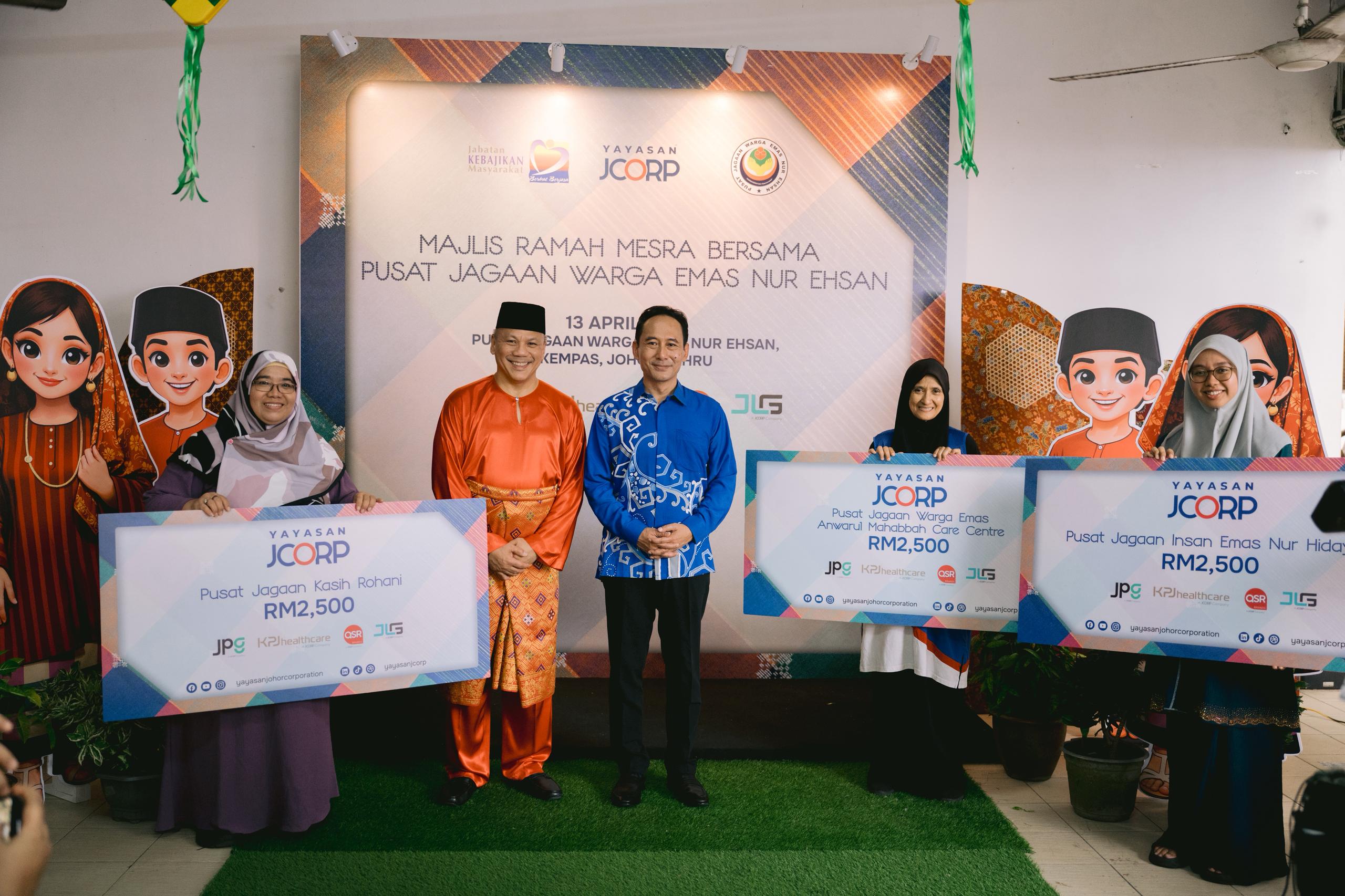 As part of its broader community outreach efforts, Yayasan JCorp contributed RM2,500 each to three charitable organisations namely Pusat Jagaan Insan Emas Nur Hidayah, Pusat Jagaan Kasih Rohani and Pusat Jagaan Warga Emas Anwarul Mahabbah Care Centre to support their ongoing care for senior citizens and vulnerable communities.