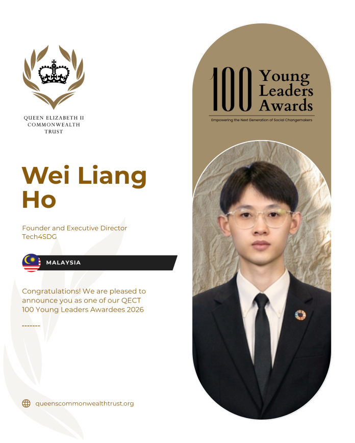 Ho Wei Liang (Liam), a technologist from Johor is one of the recipients for the coveted Queen Elizabeth II Commonwealth Trust (QECT) Young Leaders Award 2026